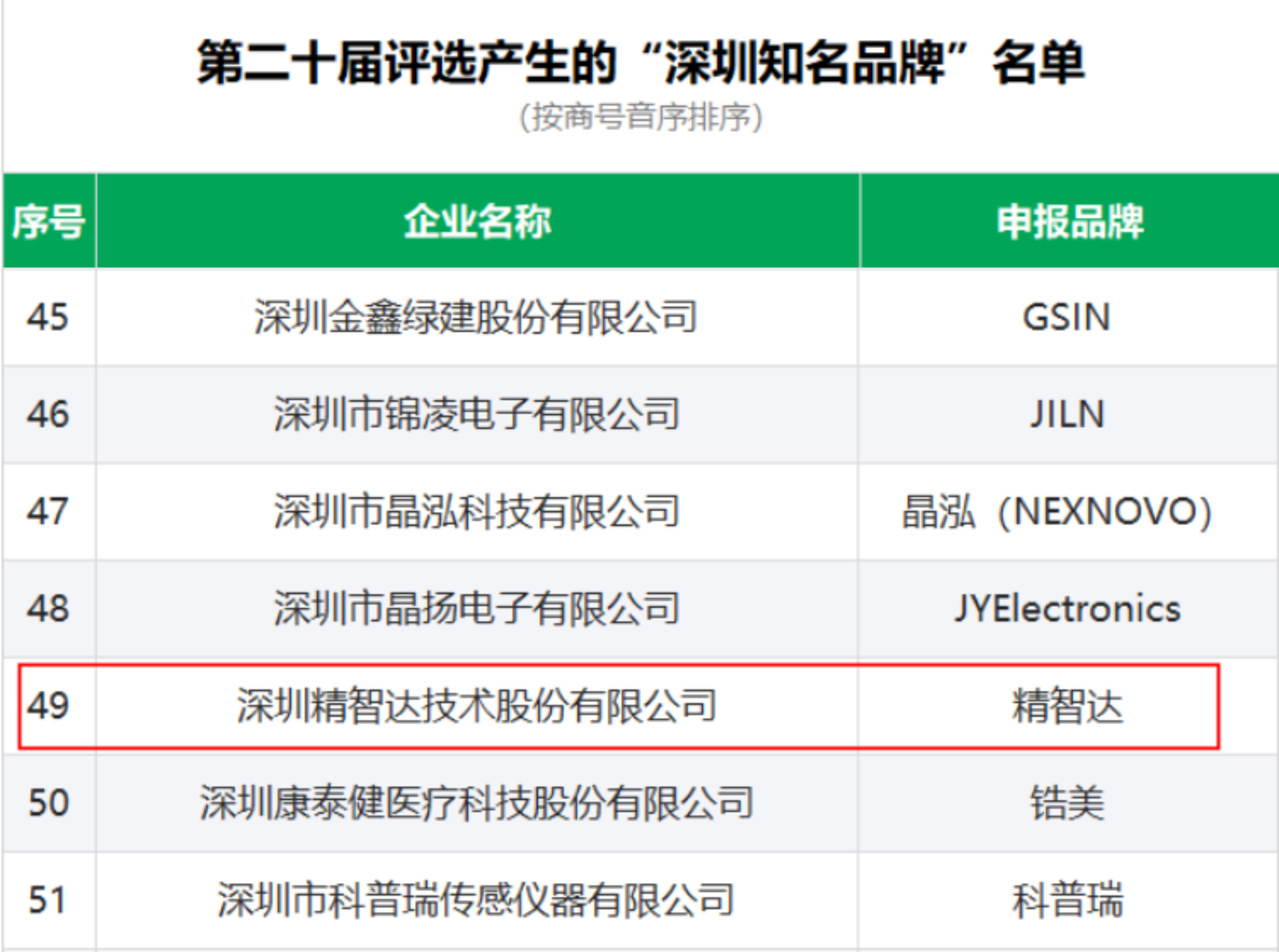 二、第二十届“深圳知名品牌”评选结果: